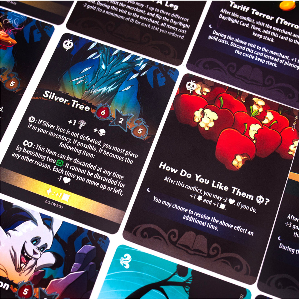 20 Strong game system and featuring his exquisite art. Players will select a hero and face off against their evil stepmother in her castle. While they traverse the forest, they might want to visit the merchant. Maybe Shawn can help you, too!