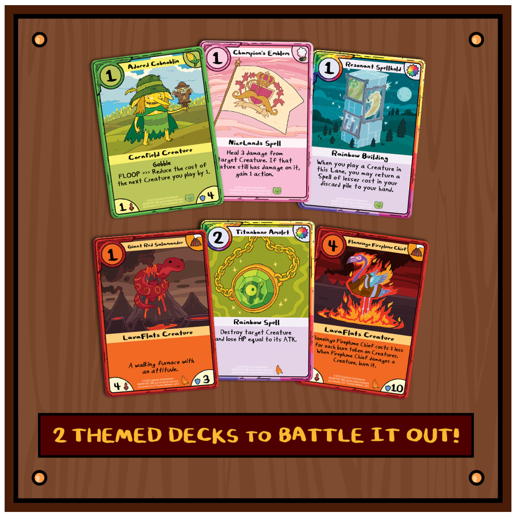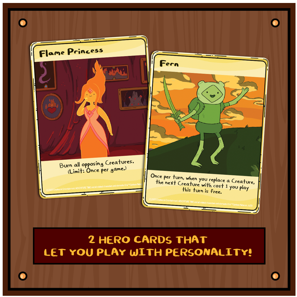 • Play as Heroes Flame Princess and Fern with themed decks featuring original art!