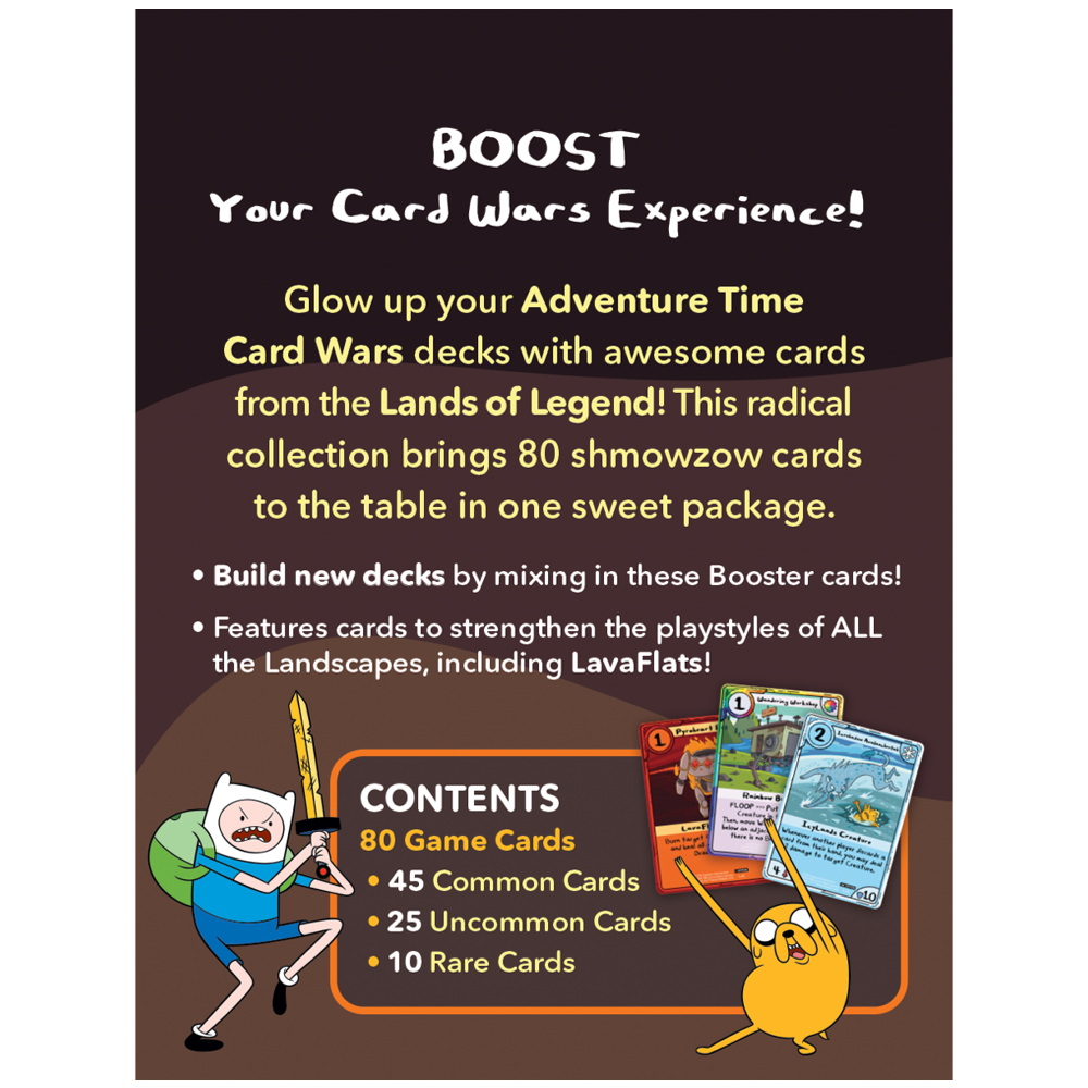 Glow up your Adventure Time Card Wars decks with awesome cards from the Lands of Legend! This radical collection brings 80 shmowzow cards to the table in one sweet package.
