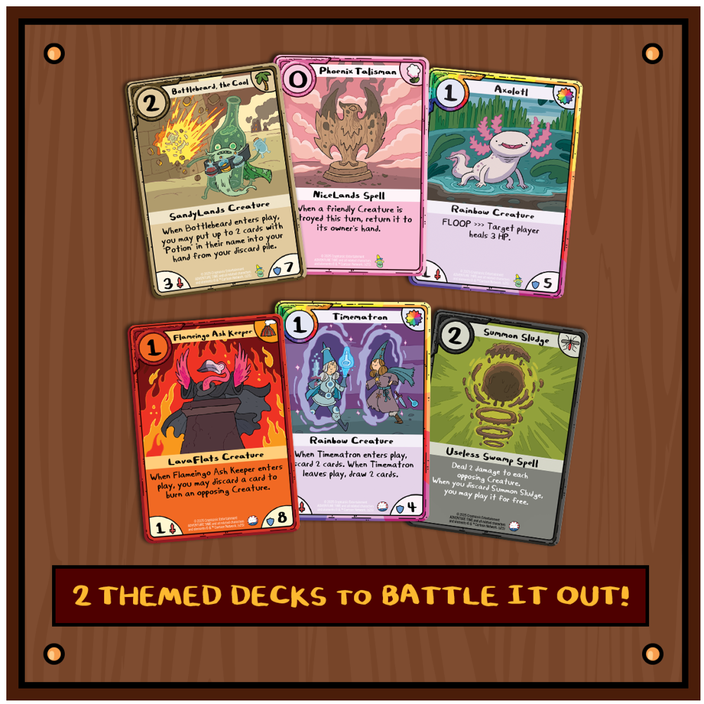 Sacrifice for power or sling some serious spells with this Adventure Time Card Wars set! Do some dark deeds when your hand is empty with Peppermint Butler's LavaFlats/ Useless Swamp deck or make magic matter more with Magic Man's NiceLands/SandyLands deck!
