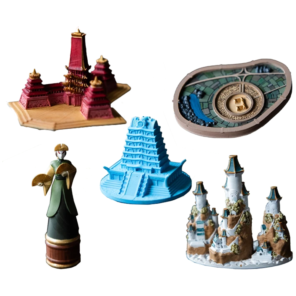 Relive Aang's epic journey with detailed representations of the Eastern Air Temple, Fire Nation Palace, Northern Water Tribe, Statue of Avatar Kyoshi, and the impenetrable Ba Sing Se.