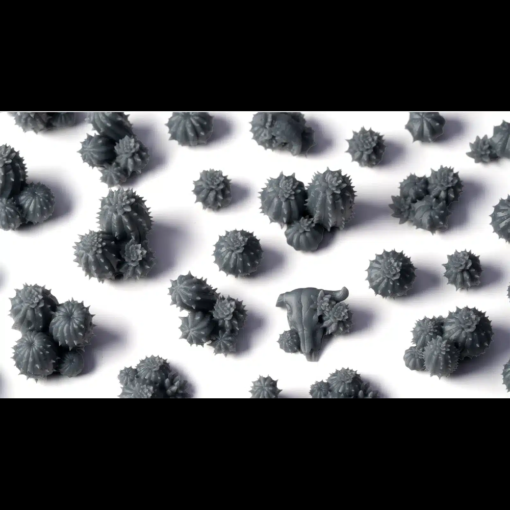 This box contains a sprue of 3D-printed Barrel Cacti Basing Bits
