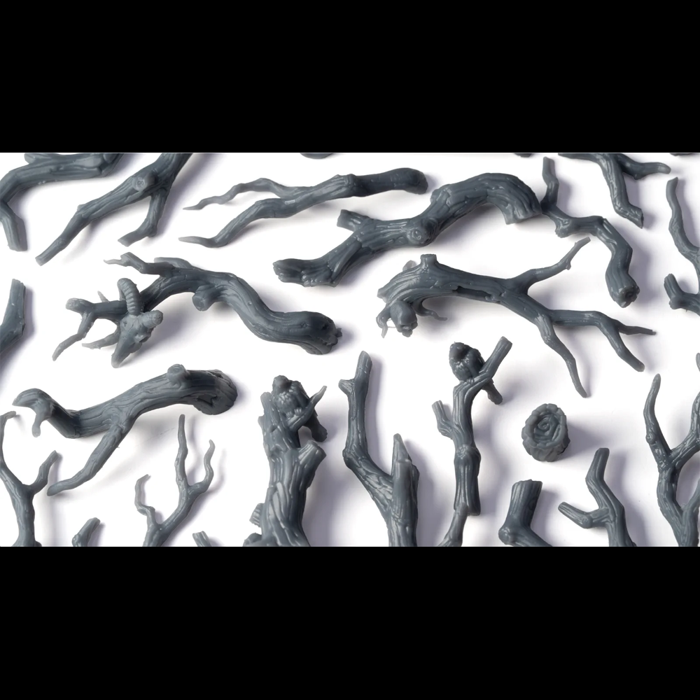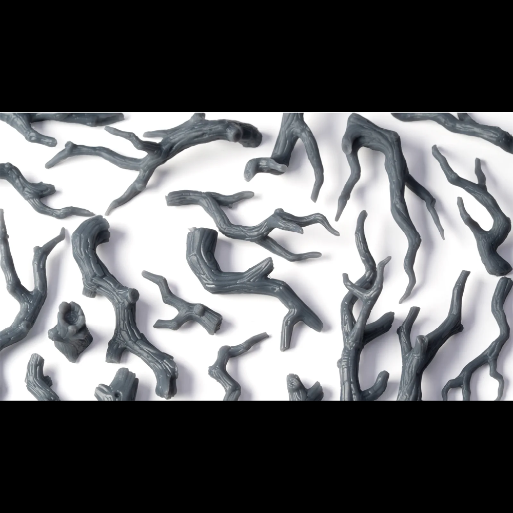This blister contains a mix of 3D-printed Gnarled Branches Basing Bits.