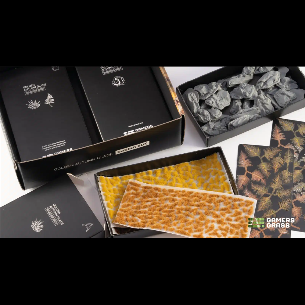 The Golden Autumn Glade Basing Box is a complete thematic kit that will bring your tabletop creations and miniature bases to Life! It features a whole scenic combination of Basing Bits, Grass Tufts, and Laser Plants for you to craft a rocky summit, basking in the warm colors of an Autumn Twilight. It also features a full tutorial booklet that, together with a YouTube Basing Guide video, will walk you through the entire process of creating this theme, explaining all the necessary assembly and painting steps, as well as hints & tips on how to effectively add the vegetation. All made simple for Epic Base results!