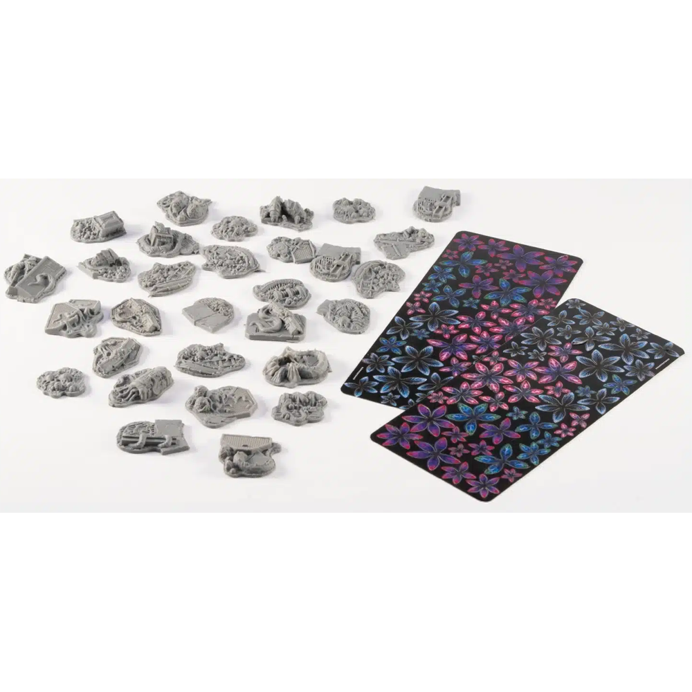 The Purple Swarm Basing Box will give shivers to your miniature armies. In some dark corner of the galaxy, a derelict spacecraft or station has become a spectacle of wonder - surely by the hand of the purple colored native specimens, endemic to that planet. By direct observation, all seem to live in perfect symbiosis, thriving for one clear goal - to swarm and consume everything! Amidst the panels and metal floors, strange creatures build their nests, spreading tendrils and eggs, laying the ground for the curious, glowing flowers that seem to shine without cease.