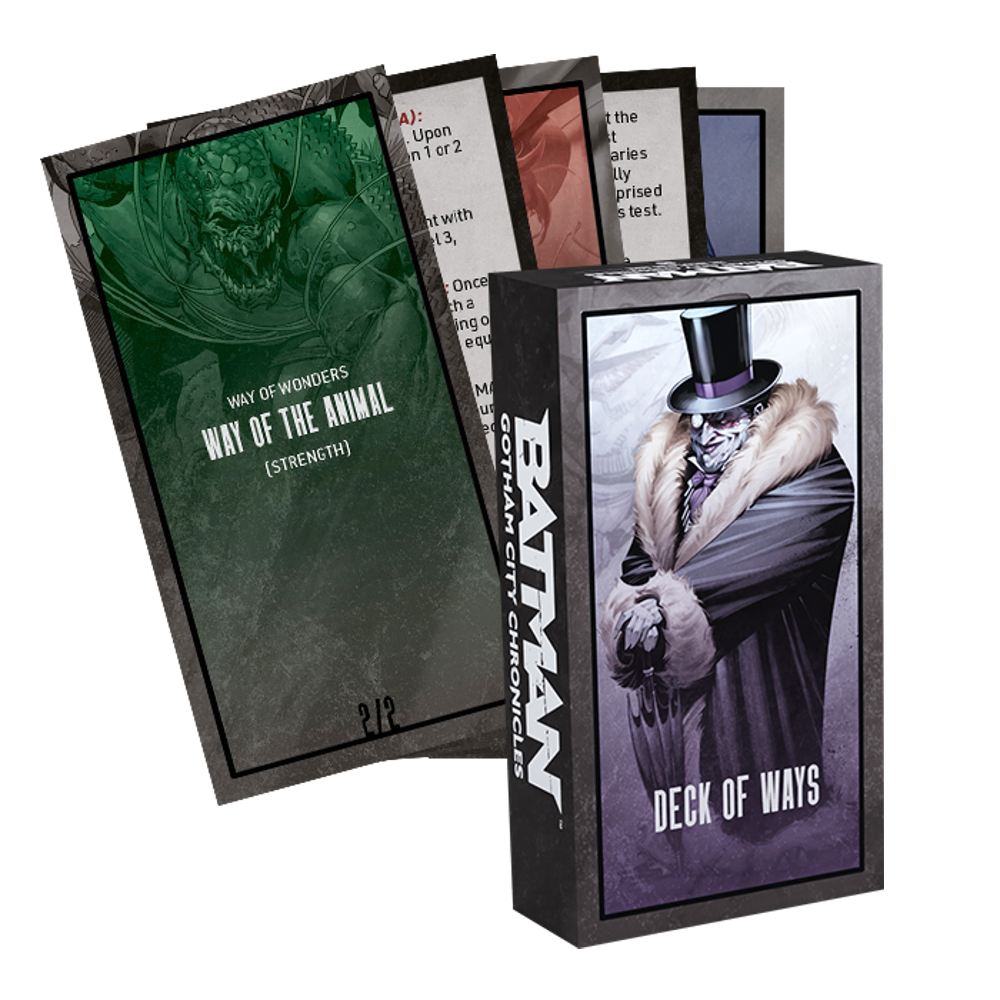 The Adventure Book - This 300-page book complements the core rulebook, immersing players in Gotham City for thrilling, heroic adventures. With a total of 18 ready-to-play adventures, you'll bring players into Gotham City to experience intense and immersive stories. Each scenario is rated for action, investigation, and atmosphere, and includes seven "one-shot" adventures and two extensive campaigns that allow characters to evolve across connected stories.