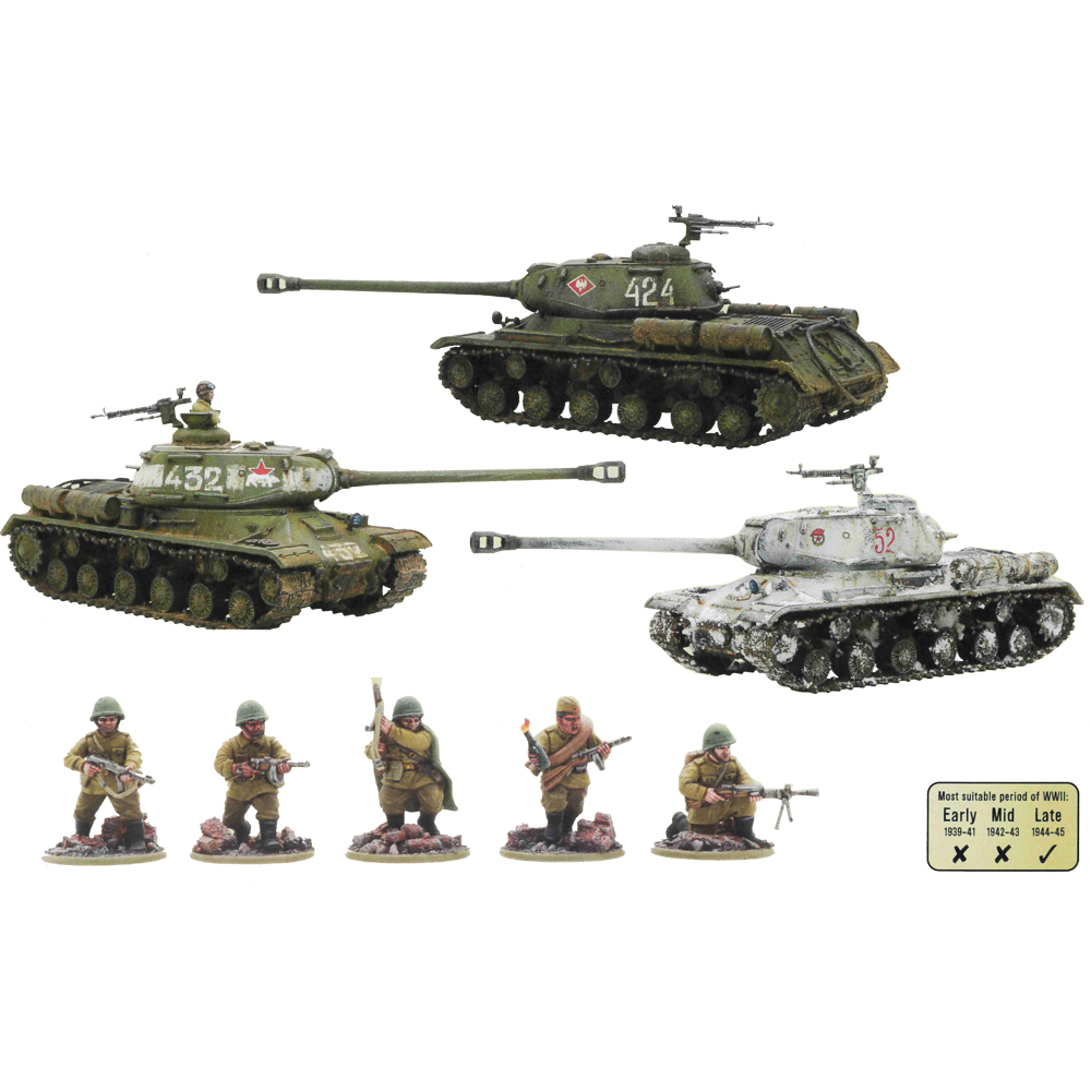 The IS-2 in this box is the later variant, with a sloped instead of stepped glacis plate. Known as the 1944 model IS-2, it led the way into the shattered remains of Berlin during the last days of Hitler's Third Reich.