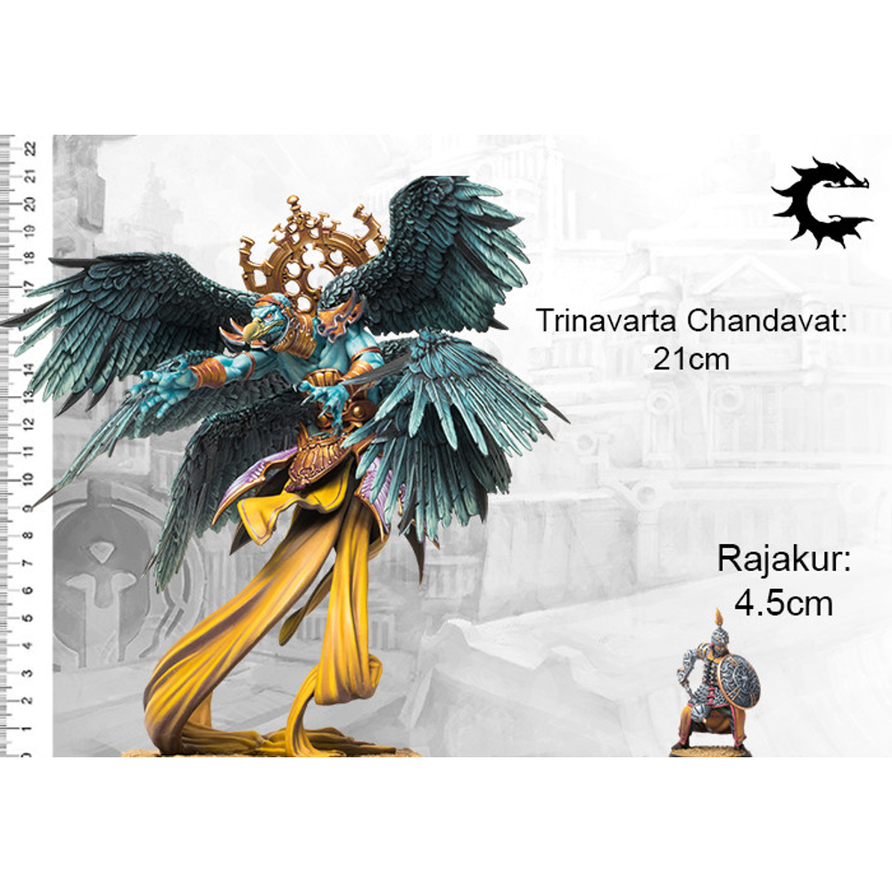 How they Play: A powerful Air Elemental and formidable Spellcaster, the Trinavarta Chandavat supports the Army's main advance while unleashing deadly barrages of steel feathers and lightning bolts.