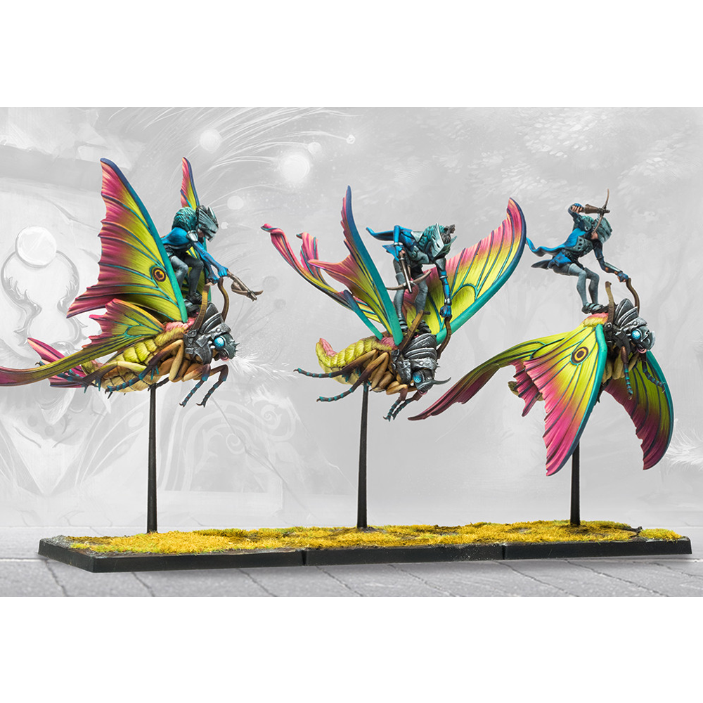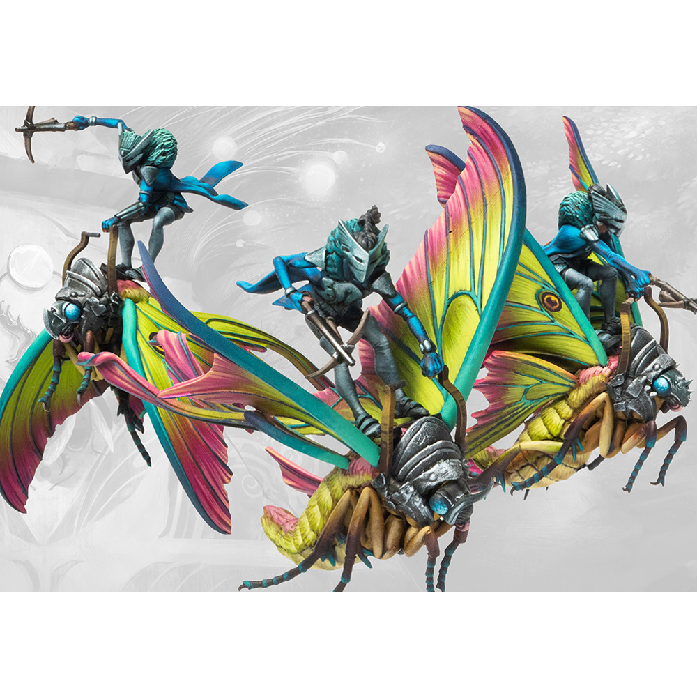 The Ciannir Riders (pronounced Key-anne-ear) go to combat armed with cunningly wrought arbalests they can fire on the wing, harrying their foe without exposing themselves to danger. Lunopeth Moths were tamed and bound millenia ago by The Weaver Courts. Long lines of these night flyers have been life bound to the weavers for so long, they are no an inseperable part of their society. Their delicate bodies do not lend themselves to the rigors of combat, and the Weavers have compensated for this by arming their riders with ranged weapons.