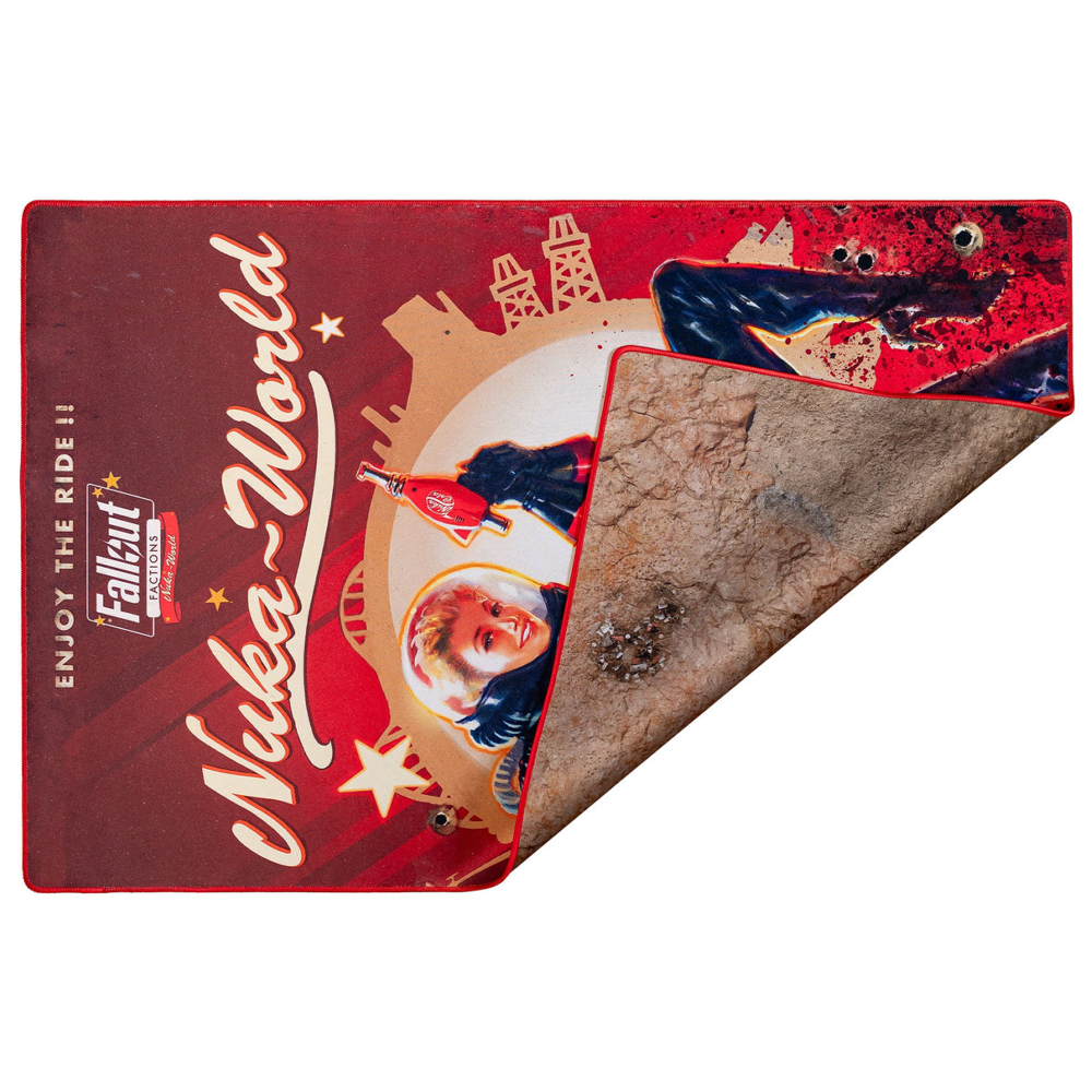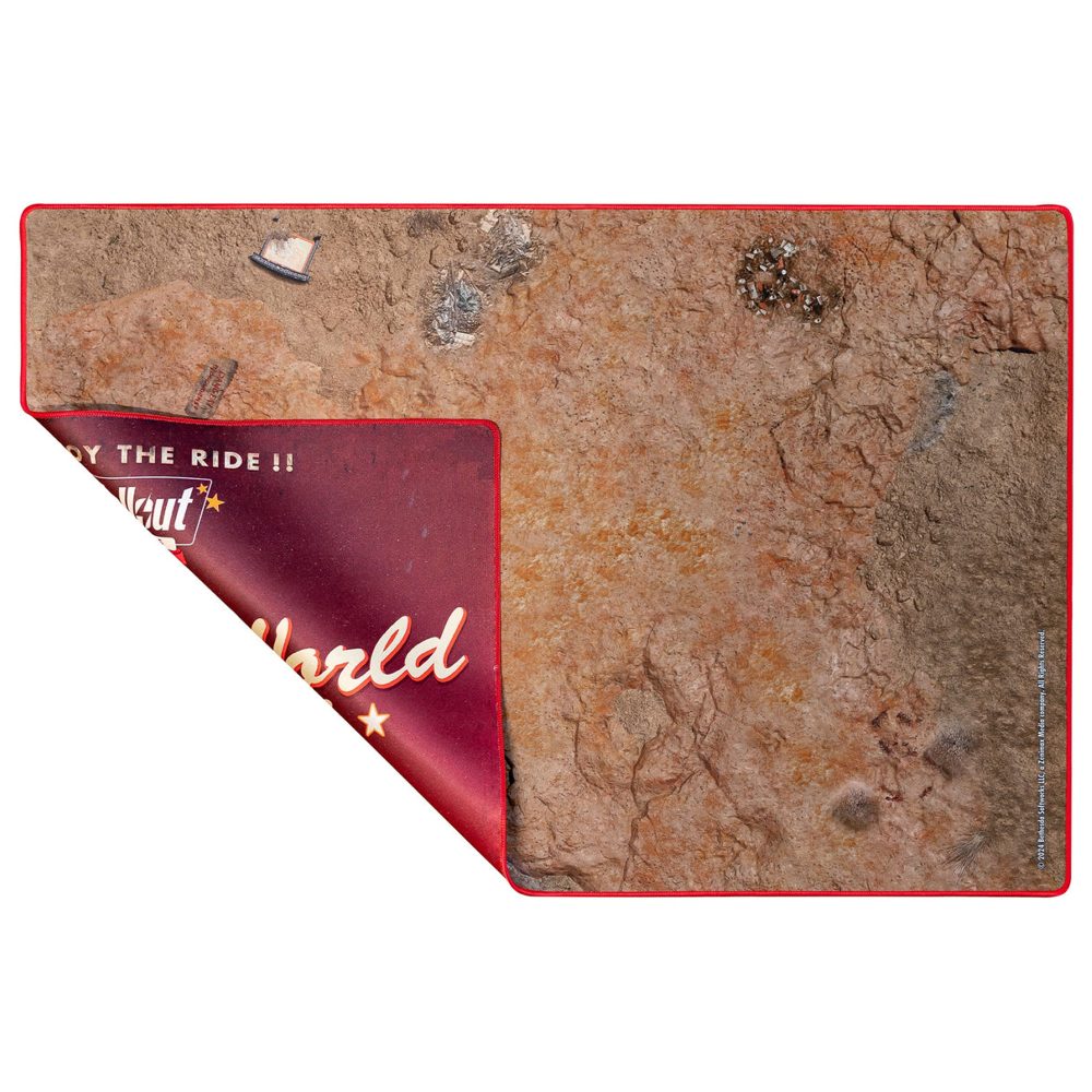 Take your Fallout Factions game to the next level with the official Nuka-World Battle Map. This high quality, double-sided, neoprene mat hosts both the Dry Rock Gulch artwork seen in the Battle for Nuka-World Starter set, and the striking Nuka-Girl poster as well. Bordered with red stitching, the first Fallout: Factions Battle Map is a great addition for the player looking to upgrade their Factions experience.