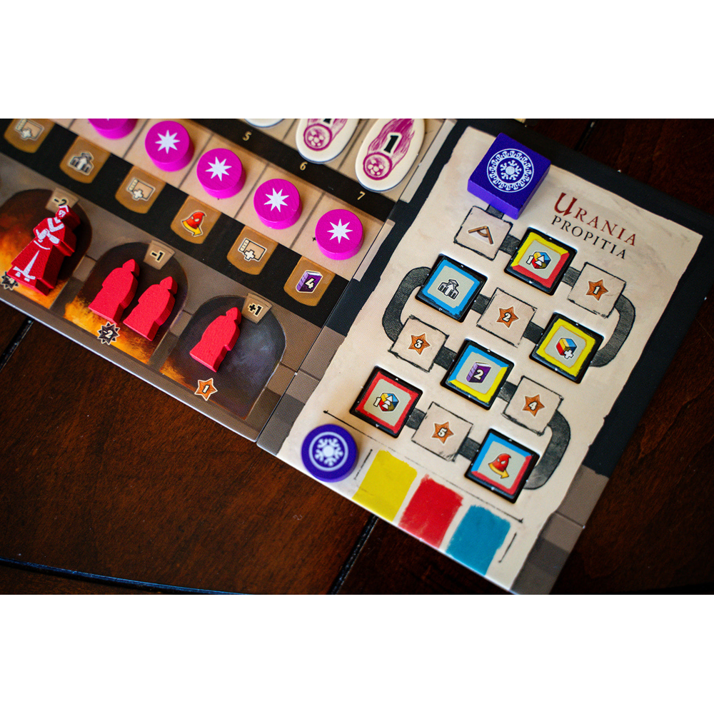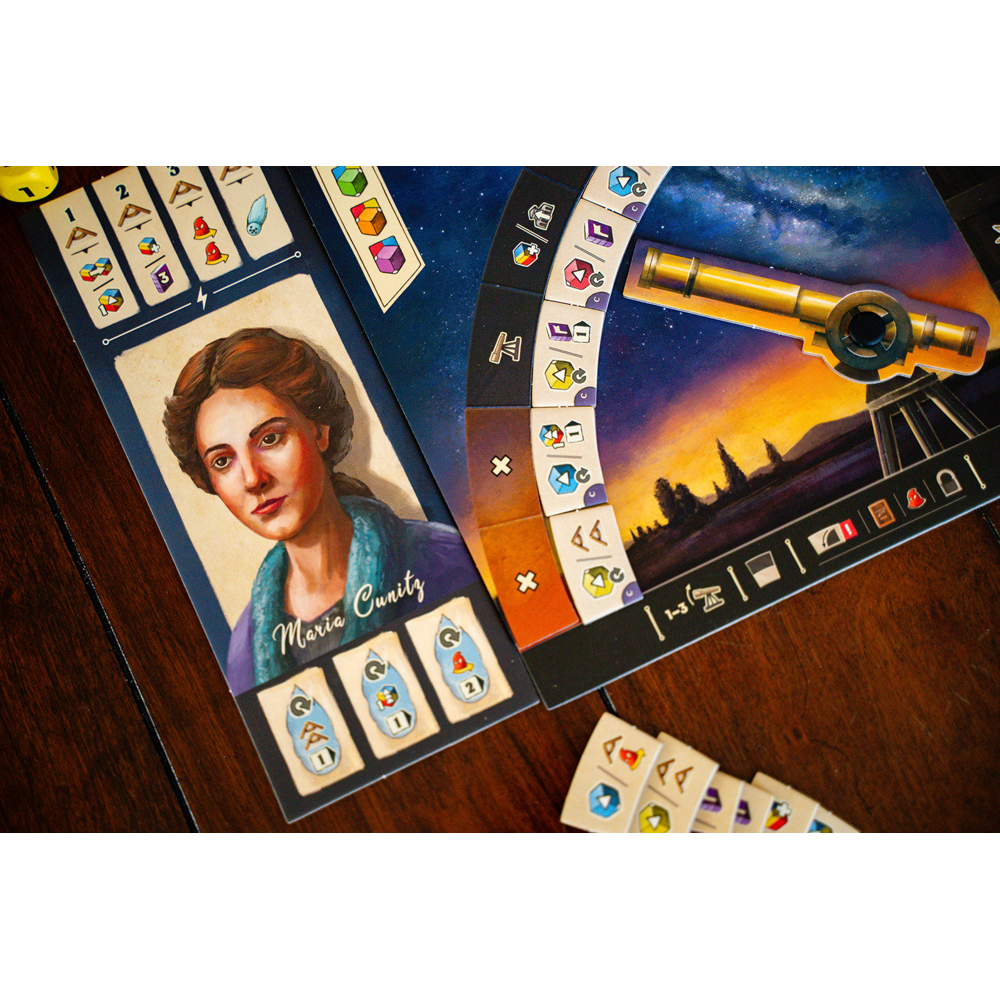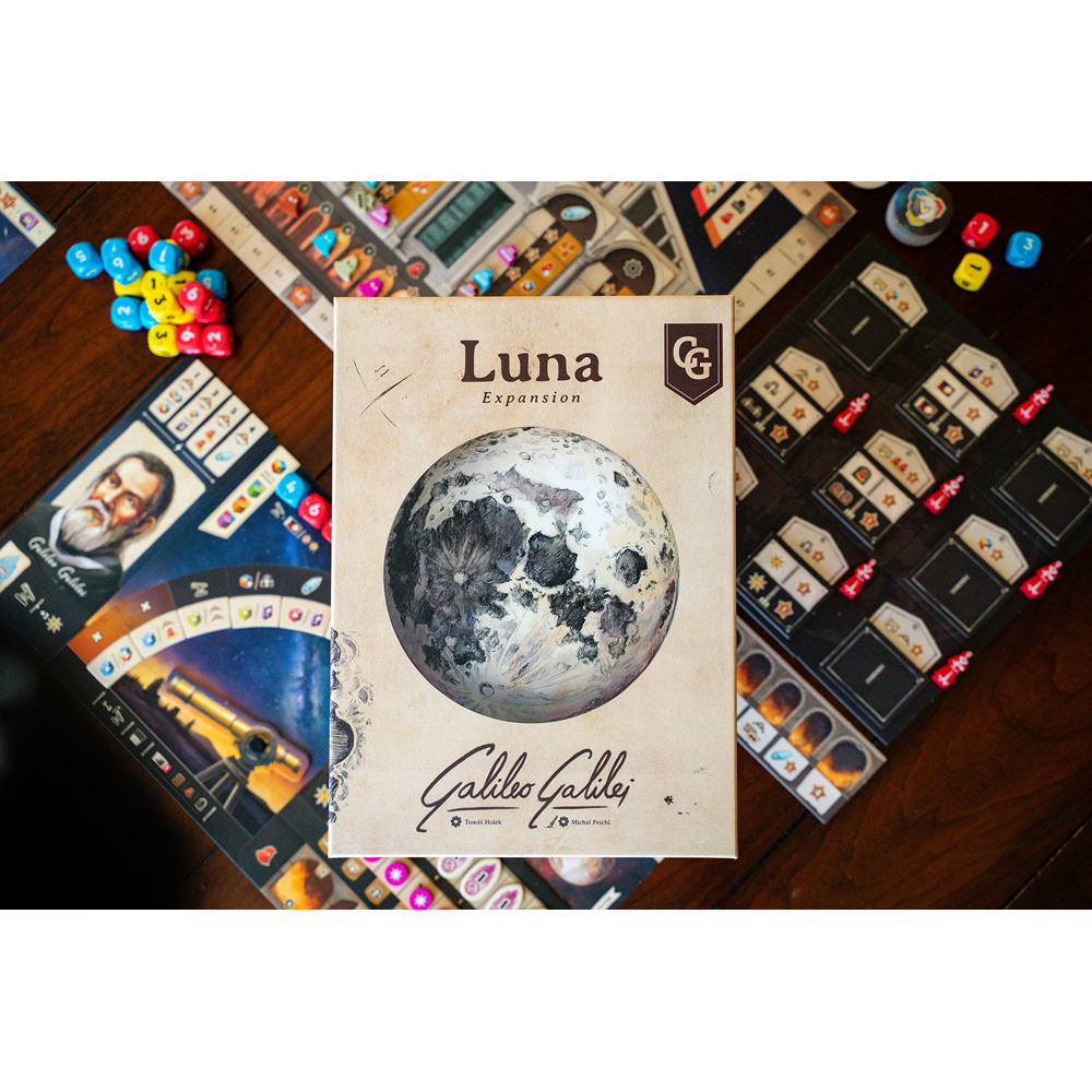This expansion for Galileo Galilei introduces the Moon as a new object of observation, adding a new scoring mechanic to explore. Discover four new playable characters, each bringing unique abilities. Additionally, powerful inquisitors enter the game, offering great rewards to those who can succesfully persuade them. Map the Moon together and enhance your strategic possibilities!
