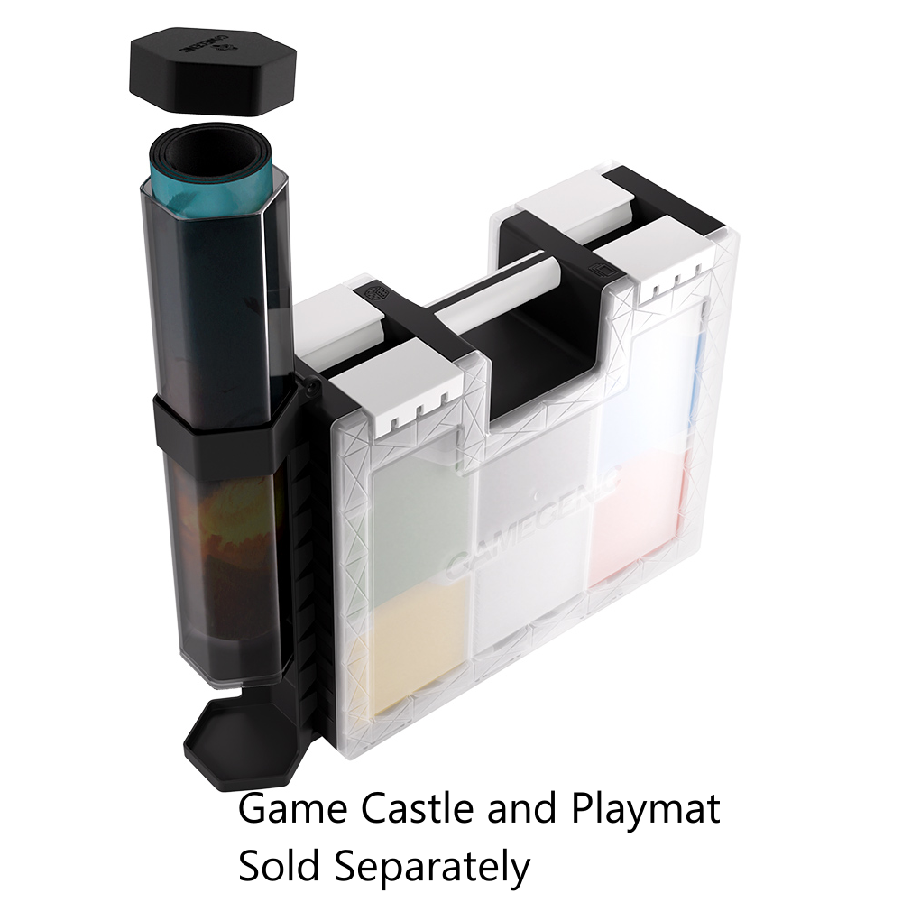 Bringing extra playmats? Every Playmat Tube can hold up to 2 standard size playmats. Use 2 Tube Holders and bring a total of 4 Playmats in your Game Castle!