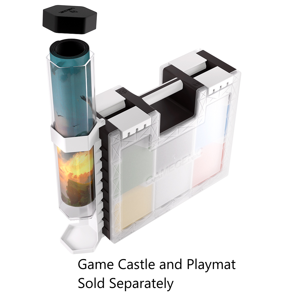 Bringing extra playmats? Every Playmat Tube can hold up to 2 standard size playmats. Use 2 Tube Holders and bring a total of 4 Playmats in your Game Castle!