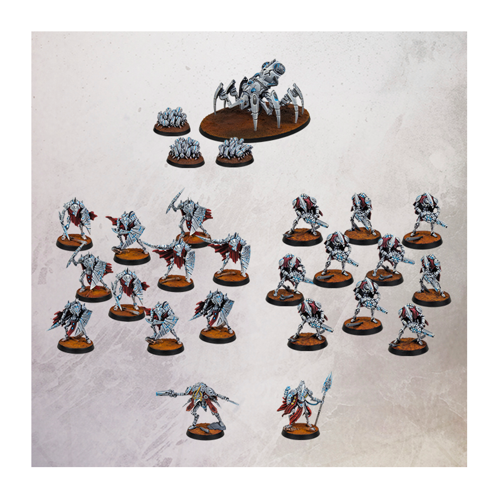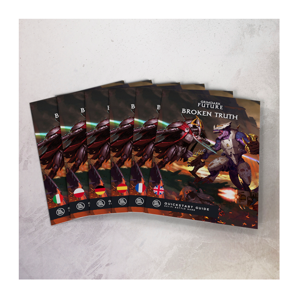 This Starter Set contains everything you need to dive into the Grimdark Future universe, with the Grimdark Future Core Rules (famously fitting on a single sheet), two full armies for the Saurian Starhost and Robot Legions, dice, tokens, missions, a playmat and more!