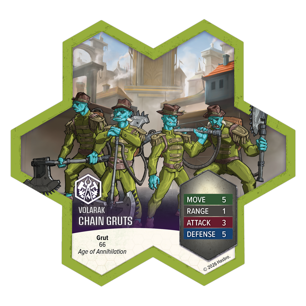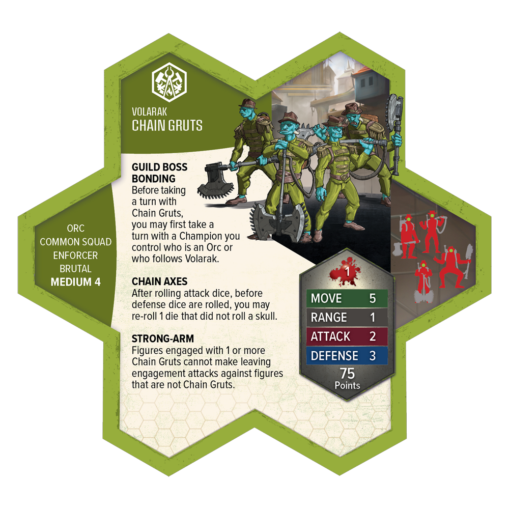 Now, those who speak ill of Volarak's regime sometimes find themselves having a difficult conversation with some Chain Gruts, their door having been smashed in by an ornery Ramosaur. Those conversations either end amicably . . . or with the revving of a chain axe!