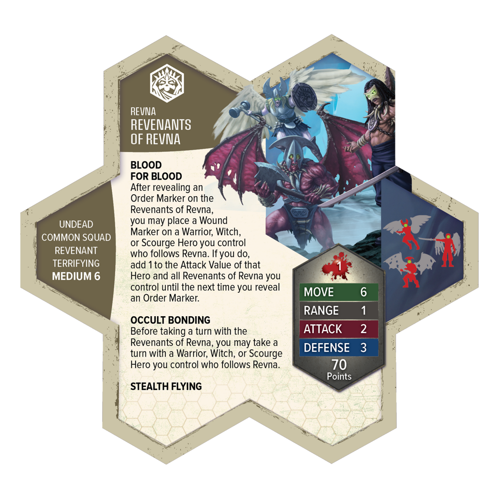 • Revenants of Revna boost themselves and allied Heroes with Blood for Blood and can activate other Revna-aligned Heroes with Occult Bonding.