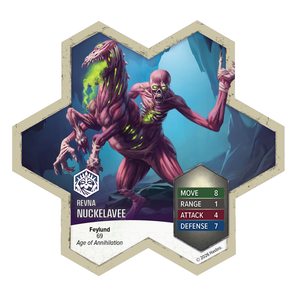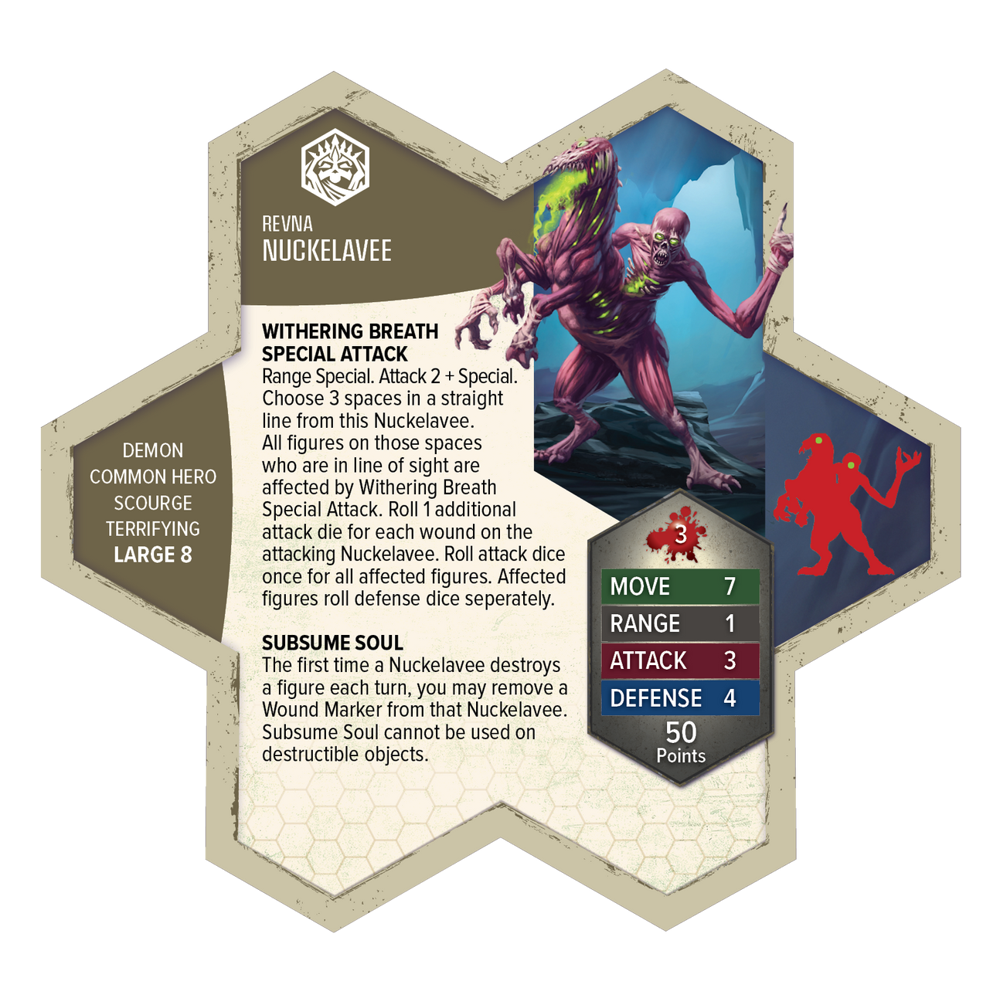 This expansion includes 1 Common Hero and a 3-figure Common Squad. The highly detailed, pre-assembled miniatures and 2 Army Cards, fully compatible with all Heroscape Battle Boxes, Master Sets, and Expansions. The Revenants of Revna Squad can offer aid to allies with strategic self-sacrifice, and the monstrous Nuckelavee stalks the battlefield, growing stronger the more it's wounded while restoring its vitality as it destroys its foes. Reinforce your ranks, field multiple squads, and overwhelm your foes with unstoppable undead forces.