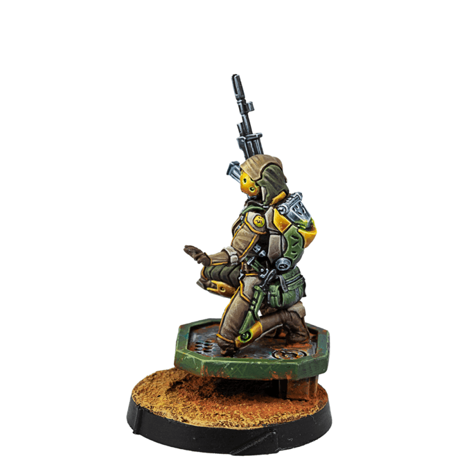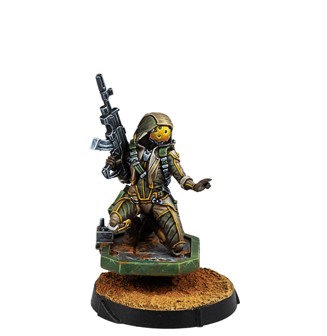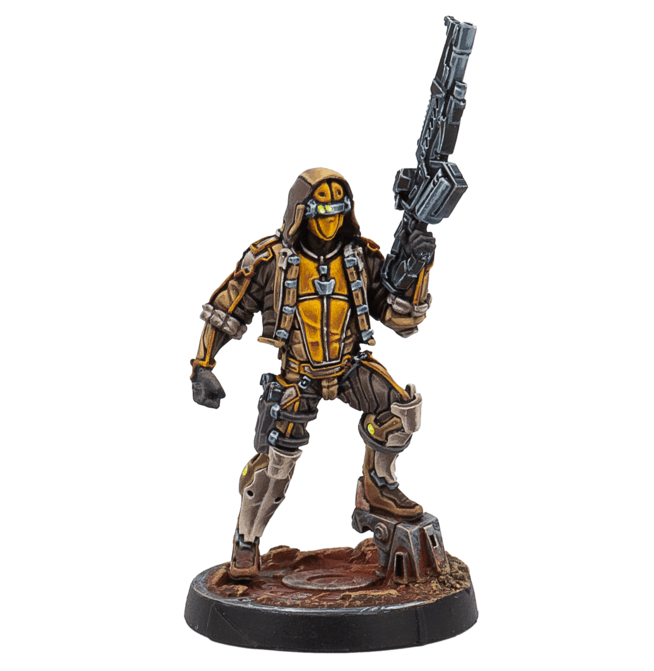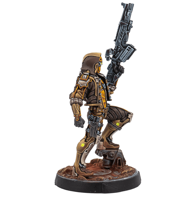 This box includes two miniatures: 1 Mukhtar Hacker, and 1 Mukthar with Red Fury. Their high mobility and Forward Deployment Special Skill will provide to your Haqqislam Action Pack (REF: 281408-0844) an impressive ability to maneuver around the game table.