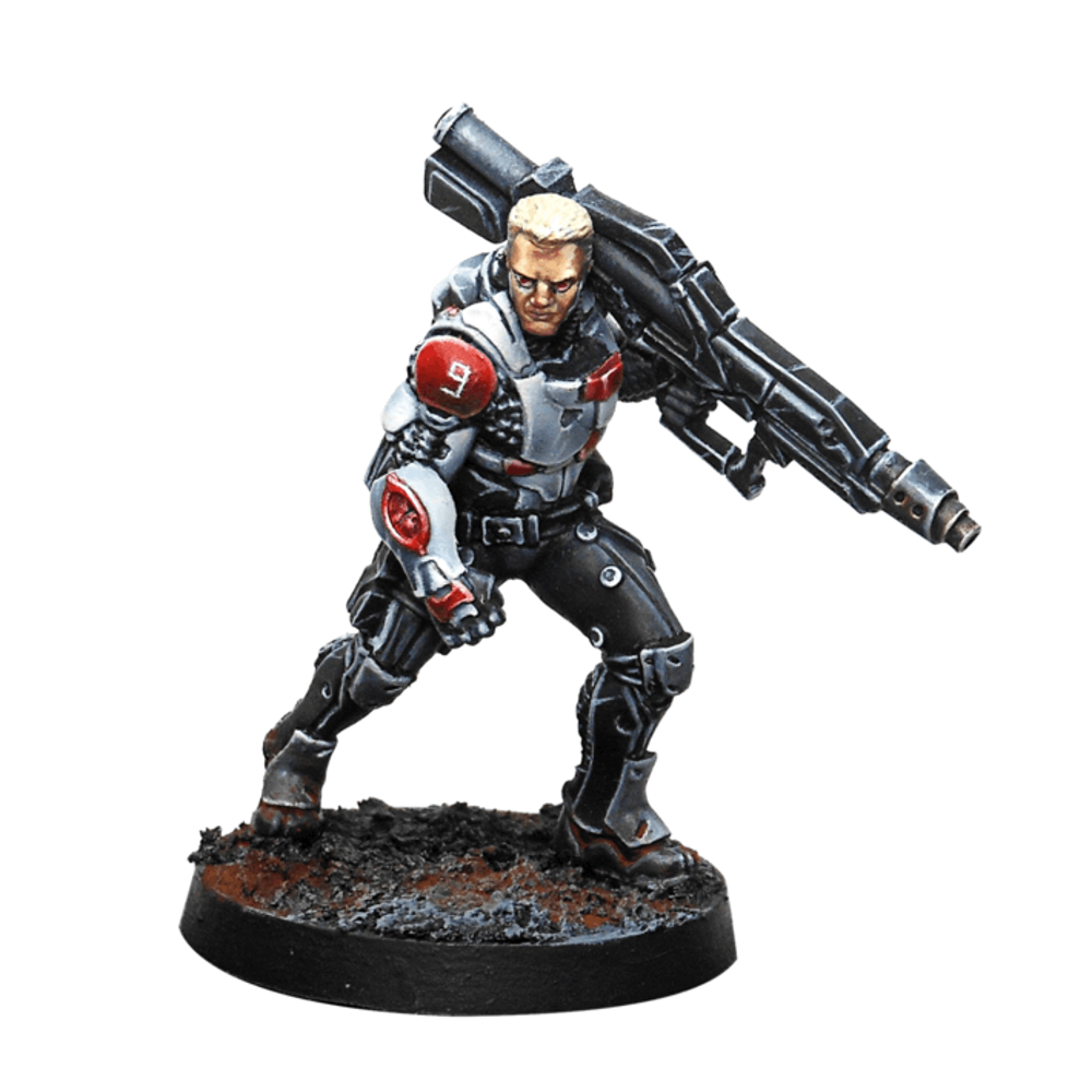 This box includes three miniatures: one Kuroshi Rider, one Ryuken-9 with Heavy Rocket Launcher, and one Kempeitai with Boarding Shotgun. Here you have a special character to join to your Aragoto bikers, plus the heavy support you need to cover the advance of your troops, and also the cheapest version of a valuable command trooper. There is no doubt that this is a great box to expand your JSA collection.