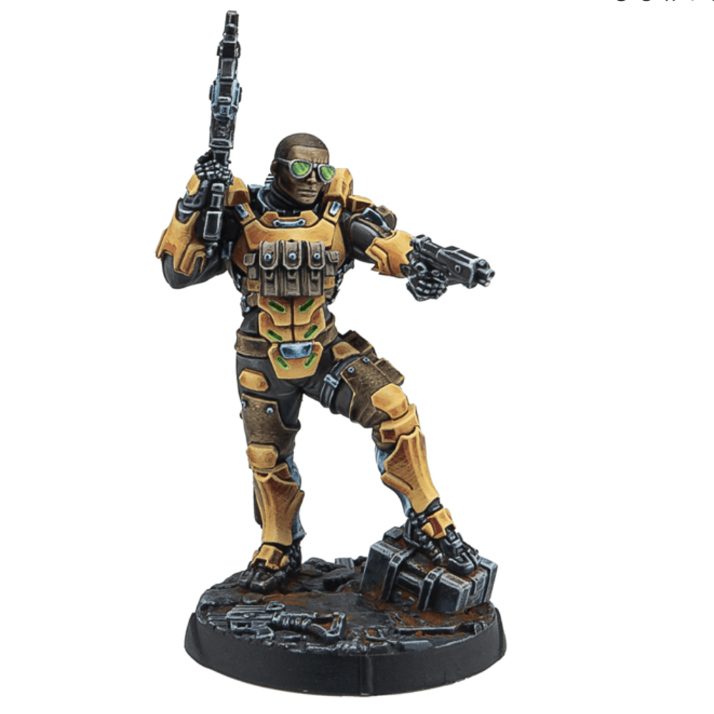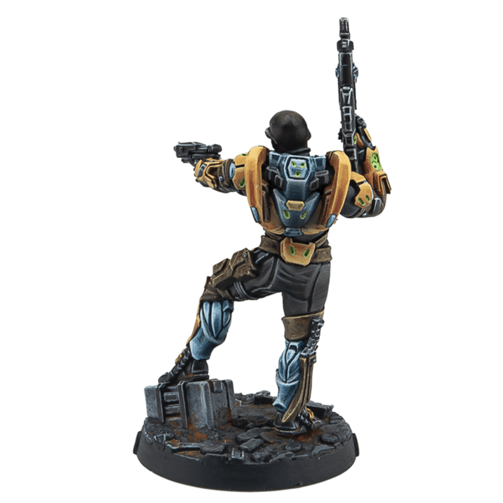 This box includes 3 miniatures: 1 Gui Feng Xi Zhuang with Combi Rifle, and 2 Madtraps. This seasoned Celestial Guard will be a great addition to your Imperial Service Action Pack (REF: 281348-1140). Thanks to his array of weapons and the fact that he can be part of any Fireteam, he will give your army great control of the game table.