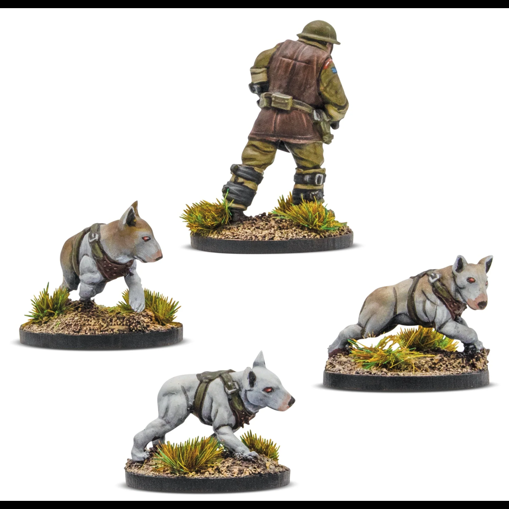 When the Totenkorps first arose on the battlefields of France in 1944 panic and terror gripped Commonwealth forces. Every advance became a nightmare. Any village, field, or wood could contain the corpses of the living dead. They might wait patiently until the frontline passed over them so they could rise and strike at the vulnerable rear areas, or they might simply rend anything that came close. Commonwealth soldiers found that dogs could quickly sniff out the danger, but were driven so mad with terror they couldn't be relied upon. The controversial scientist Dr William Sargant championed the creation of Cerberus units, dogs surgically and chemically altered to suppress their fear instincts. Cerberus units are viewed as something of a mixed blessing, with some regiments adamantly refusing to deploy them.