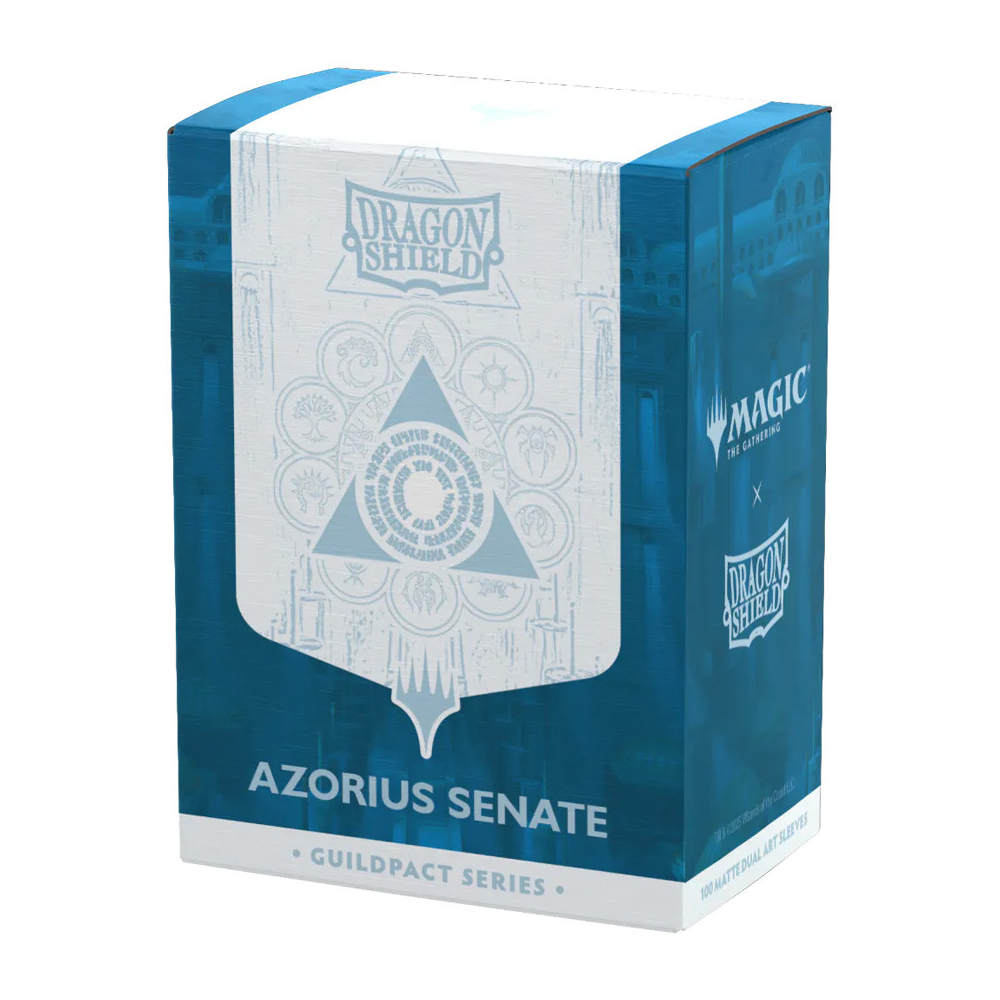 Uphold the law with your peers in the Azorius Senate. Show your guild allegiance with the Magic x Dragon Shield Azorius Senate Matte Dual Art Sleeves.