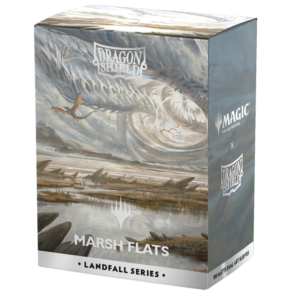 The fetch lands are among the most iconic Magic: The Gathering cards ever made. Now, as part of the Landfall Series, you can get the jaw-dropping showcase version of Marsh Flats - with dragons! - as Dragon Shield Matte Dual Art Sleeves.