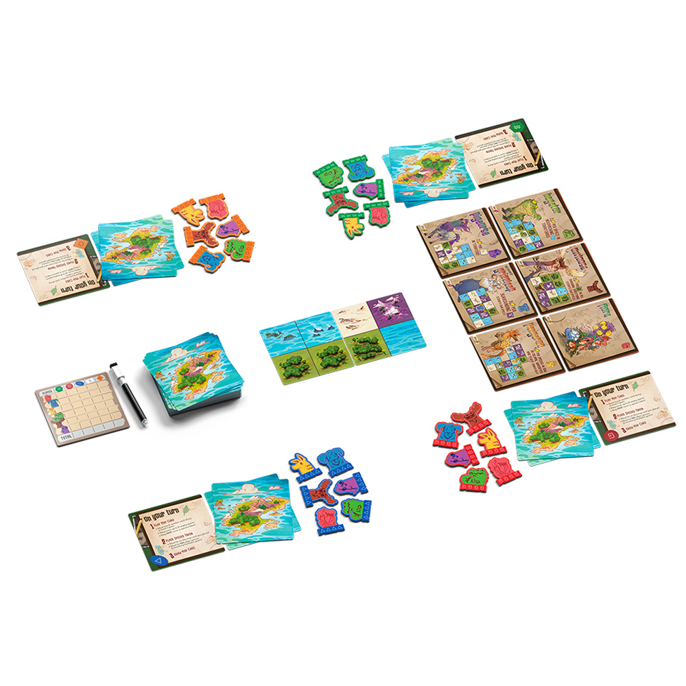 As an intrepid investigator of all things idiosyncratic, your job is to explore the island and document these fantastic creatures. On your turn, explore by placing a terrain card somewhere on the island (with the ability to cover up previous terrain!).