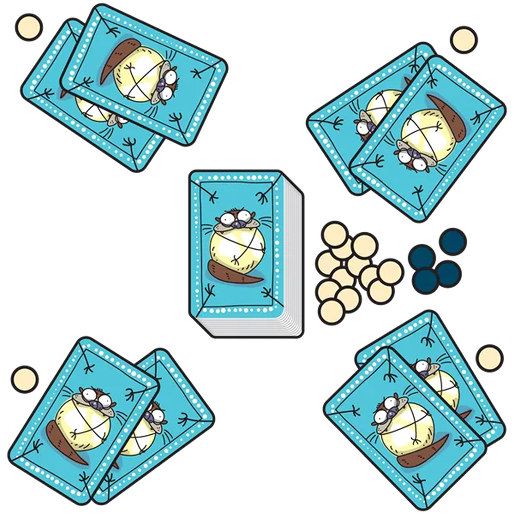 In your turn, pick a card and play one of your cards. Pick pearls, attack other otters, defend yourself and avoid sea urchins. If at the end of your turn you have two sea urchins in your hand, you are out, but you can still win because, at the end, the value of the pearls you have collected counts.