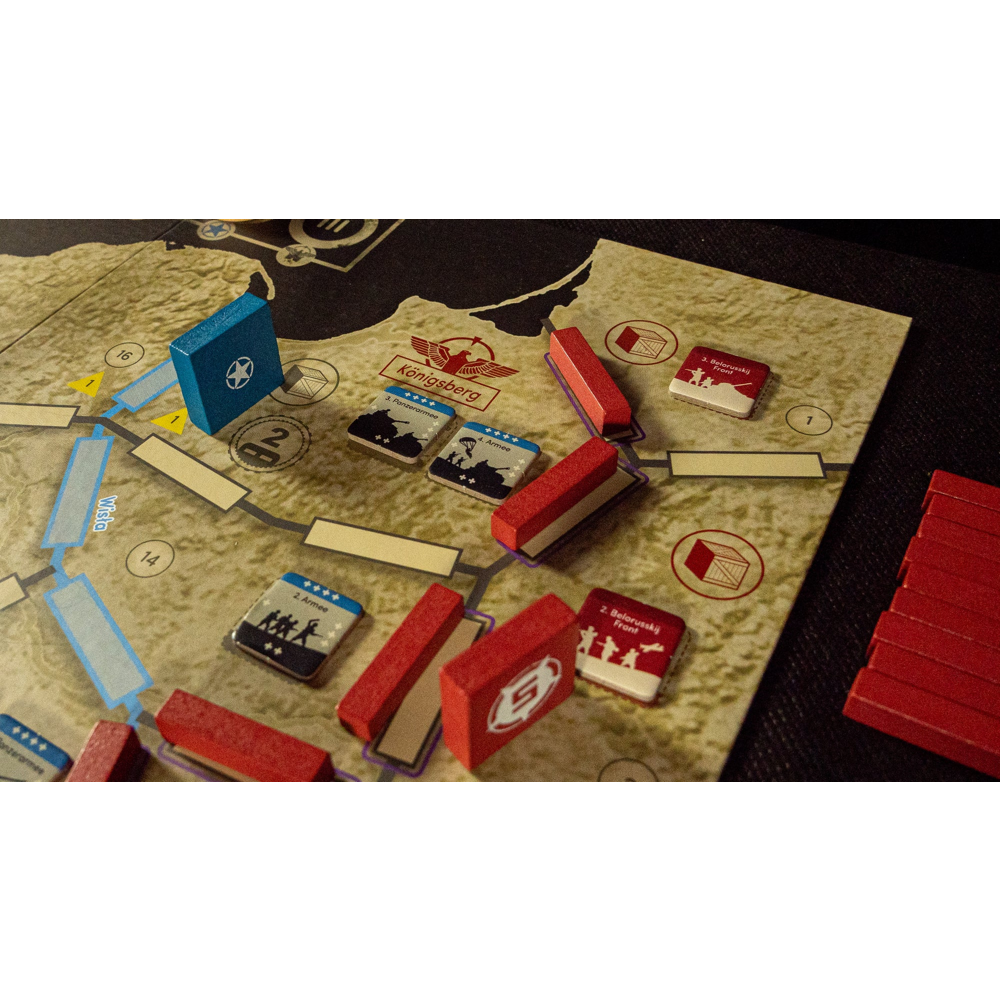 Race to Berlin is an immersive two-player wargame designed by Krzysztof Dytczak. Players represent commanders of the Red Army and the Western Allies, but they also direct the German armies: the Soviet player moves them on the Western Front, the Allied player on the Eastern Front, each trying to slow down their opponent.