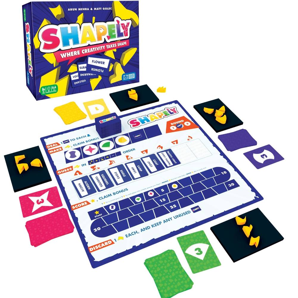 In Shapely, players are given a prompt word and must make an image using abstract 3D pieces. When all are completed, players will guess which objects everyone has created. Players get points if others correctly guess the object that was created.