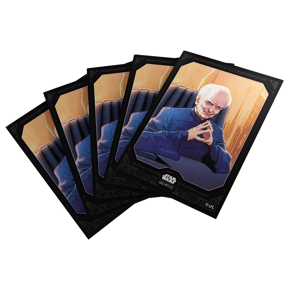 • This set includes 60 borderless, full-color printed sleeves featuring a Chancellor Palpatine design as well as two clear sleeves for the leader and base.
