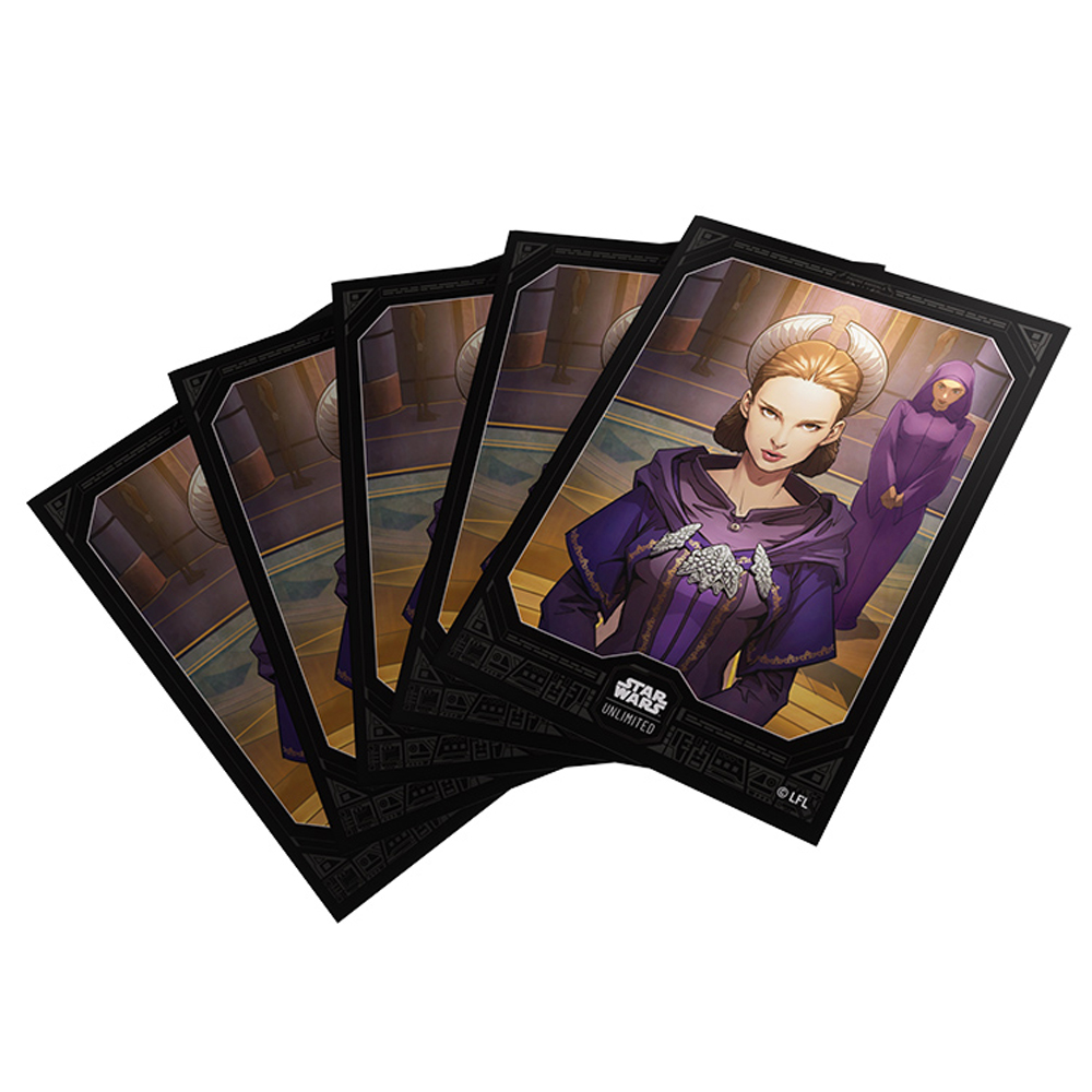 • This set includes 60 borderless, full-color printed sleeves featuring a Padme Amidala design as well as two clear sleeves for the leader and base.