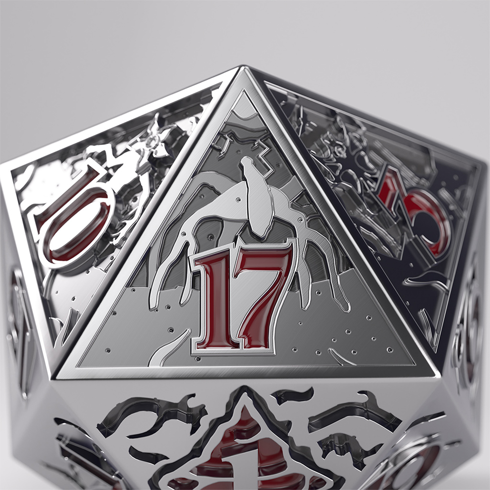 • ICONIC DESIGN DETAILS: Features engraved Upside Down scenes across 10 faces, the "1" as the dimensional gate, and the "20" with the Hellfire Club demon symbol.