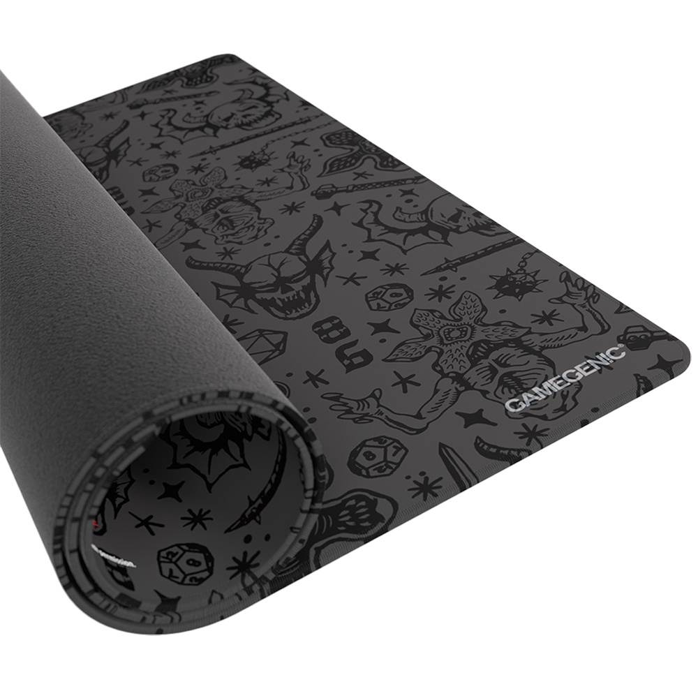 This officially licensed HELLFIRE CLUB Playmat is a must-have accessory for every fan of the Stranger Things series. The Prime Playmat brings the atmosphere of one of Netflix's most popular shows right to the gaming table! This softly cushioned playmat comes with a flat premium stitching that prevents cards from getting caught on the seam of the mat. It is 2mm thick and protects your cards from rough or dirty surfaces. The mat is outfitted with an ultrafine surface and an anti-slip back side that keeps it safely in place during gameplay.The fascinating design, the comfortable feel, and soft material are perfect for an upgraded gaming experience or your home desktop. The Prime Playmat is perfect for a vast variety of games, TCGs, and LCGs, especially for all enthusiastic HELLFIRE CLUB and Stranger Things fans. • OFFICIALLY LICENSED STRANGER THINGS PLAYMAT: Featuring bold Hellfire Club artwork, this full-color playmat brings the intense energy of Hawkins to your tabletop or desk. • PREMIUM PLAY SURFACE: Made with an ultrafine, softly cushioned 2mm surface, it protects cards from damage and delivers a smooth, seamless gaming experience. • ANTI-SLIP BACKING FOR STABILITY: Stay focused during every turn; this mat's anti-slip rubber base keeps it firmly in place on any surface. • STITCHED EDGES FOR DURABILITY: Designed with flat premium stitching to prevent fraying and avoid snagging your cards during play - built to last through countless campaigns and duels. • VERSATILE SIZE FOR GAMING & DESKTOP USE: Measuring 61 x 35 cm, it's perfect for TCGs, LCGs, board games, and even as a desktop mat - ideal for fans of Stranger Things and tabletop gaming alike.Contents: