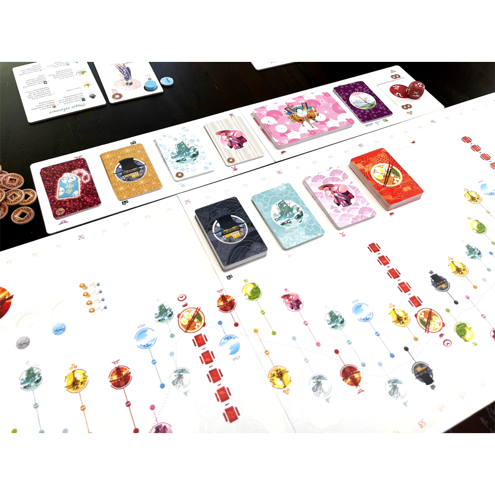 Tokaido: Crossroads & Matsuri combines the original two expansions and most promos into one box, adding a level of complexity to the core game. All components fit into the core Tokaido box.