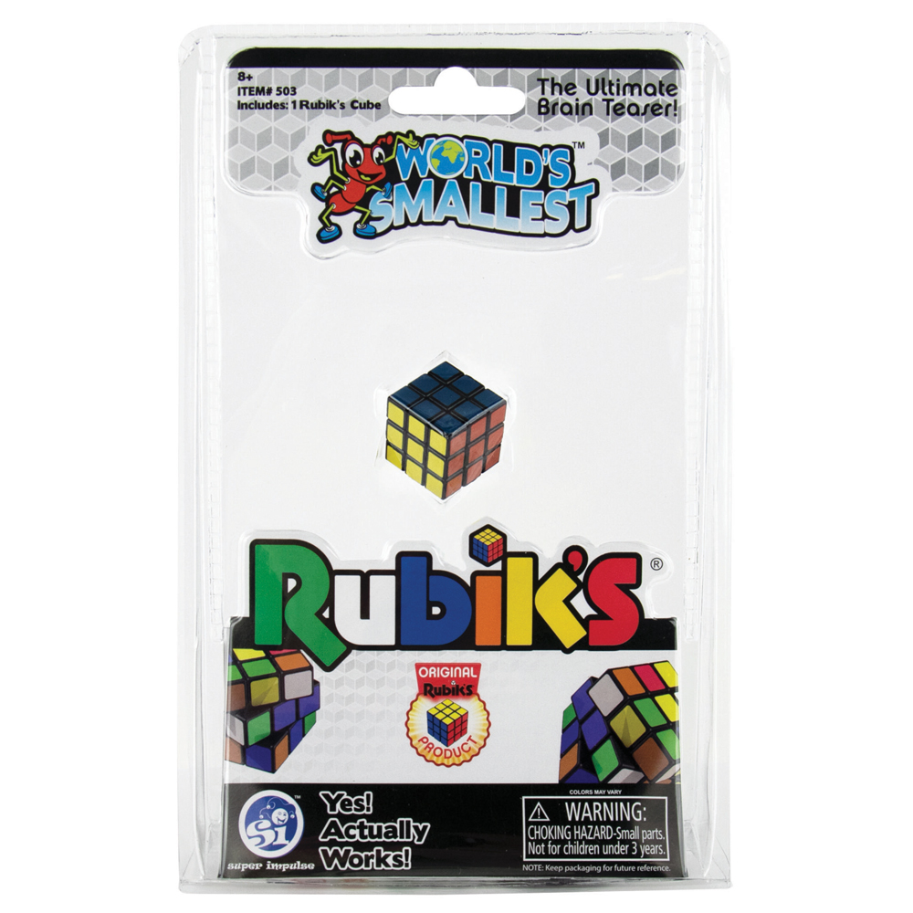 The world's top-selling 3-Dimensional puzzle is now available in the world's smallest size! Twist and turn the cube using various combinations to return it to its original state, one solid color on every side.