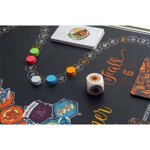 Mariposas is a very fun, entry level game, in wich you compete with up to 4 other players, traveling with your butterflies across northamerica, trying to fullfil diferente objectives during 3 seasons (Spring, Summer and Autumn). Great game, easy to learn, good quality componentes, nice artwork, fun for casual and hardcore players.