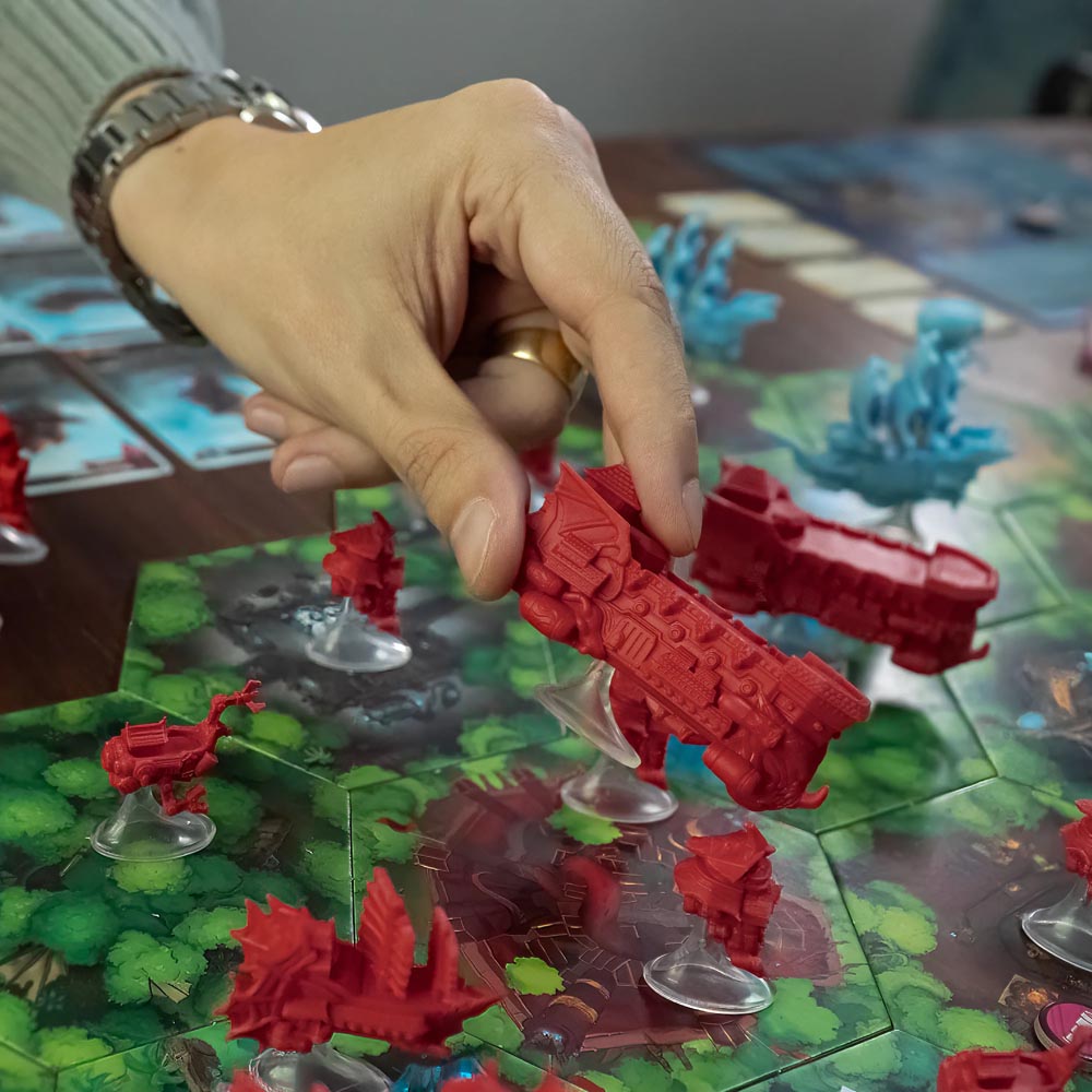 1 Rulebook 152 Plastic Miniatures for 4 Player Factions ‣ 10 Frigates for each Faction ‣ 5 Destroyers for each Faction ‣ 5 Cruisers for each Faction ‣ 3 Dreadnoughts for each Faction ‣ 6 Engineers for Each Faction ‣ 6 Outposts for each Faction ‣ 3 Fortresses for each Faction 49 Territory Tiles 49 Explored Tokens 68 Coin Tokens 25 Plastic Plastic Crystals 22 Custom 8-Sided Dice 75 Exploration Cards 60 Secondary Objective Cards 64 Discovery Cards 1 Victory Point & Turn Order Track 28 Unit Cards 4 Player Dashboards 4 Player Stronghold Tiles 16 Player Order Tokens 4 Player Turn Order Tokens 4 Player Victory Point Tokens 4 Player Trays for Easy Storage