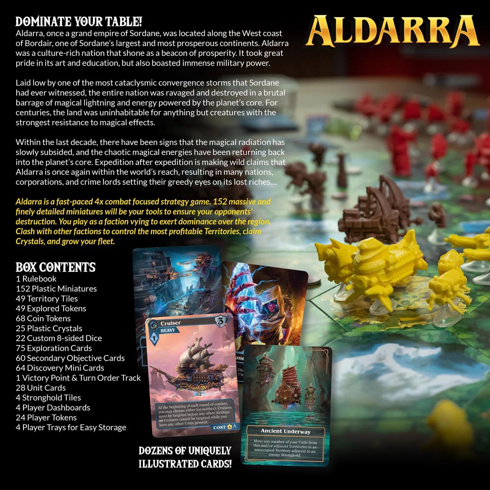 Aldarra is a fast-paced 4x combat focused strategy game. 152 massive and finely detailed miniatures will be your tools to ensure your opponents' destruction. You play as a faction vying to exert dominance over the region. Clash with other factions to control the most profitable Territories, claim Crystals, and grow your fleet.