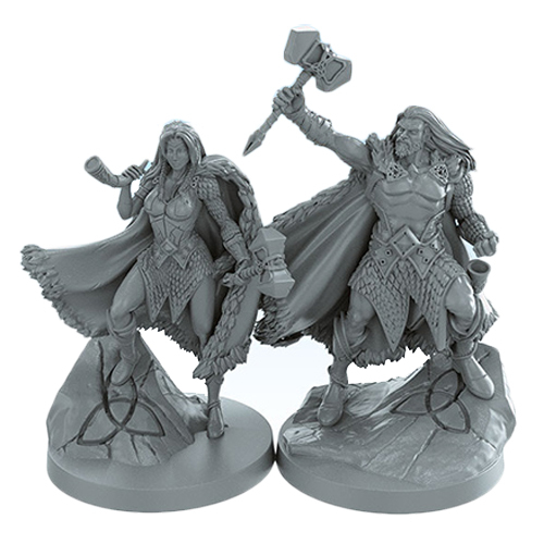 Sword & Sorcery campaign with this Hero Pack! The rage of Sigurd and Sigrid, legends of the Northern Lands, is ready to be unleashed! Bards still play songs reminding the world of their epic deeds, such as the defeat of the Snow Gremlins or the destruction of the Frost Giants' citadel! Sigurd and Sigrid can be played as either a Thane or a Skald. As a Thane, your Hero is a warrior of exceptional strength and constitution who draws upon mystical powers to forge and throw lightning and flaming hammers at their enemies. But they can also be a faithful guardian of the party, able to protect their fellow adventurers. As a Skald, your Hero is strong, fast, and valiant as few others. They are also able to inspire and lead their comrades with war-chants and mystical lyrics, as well as terrorize their foes with the powerful echo of the Gjallarhorn.