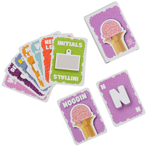 We've played Noggin a few times now together as a family and have had a lot of fun with it. The clues and the letter combos sometimes require clever responses, and it is always fun to try to come up with them. It's also a lot of fun when people come up with answers that aren't quite right. For example, the Describe card came out and the letters were W and E. My wife blurted out Wiggly Elephant!. Now elephants are a lot of things, but I don't know about wiggly. Maybe their trunks I suppose. Anyway, we had a good laugh about it and my son ended up winning the card with an answer of White Elephant. It's really simple to teach, can accommodate a lot of players, and is a lot of fun. Highly recommended.