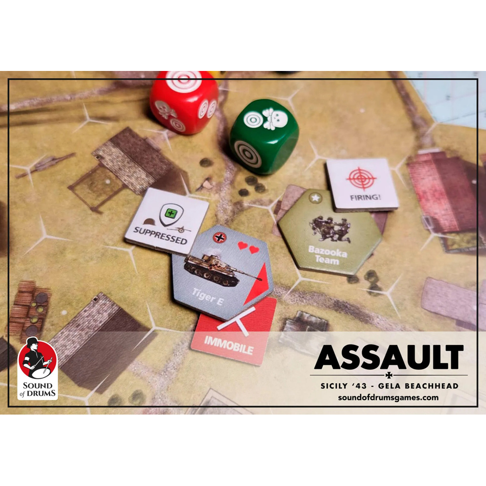 Assault Sicily '43 offers you intense tactical battles, but also a huge selection of historical units. This box provides you with a unique gaming experience. Thanks to your formation card deck, no game will be the same. This increases the replay value to infinity. The unique dice system specially developed for this game system ensures fast and action-packed gameplay. Know the strengths and weaknesses of your units and use them cleverly to decide the battle in your favour.