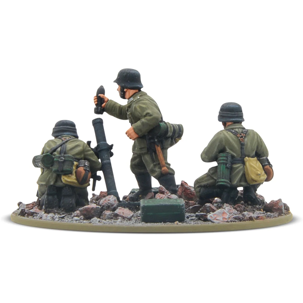 Contains one metal medium mortar with three Warlord Resin German Veteran Infantry crew, and plastic base.
