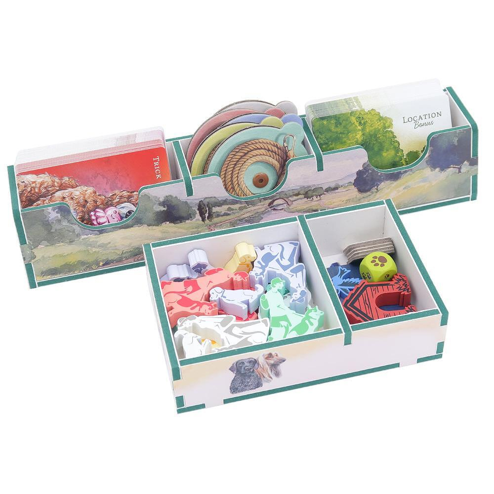 Official full colour insert compatible with Dog Park and includes space for the New Tricks, Dogs of the World, European Dogs and Famous Dogs expansions. The insert also works with the Collector's Edition version of the game, however the addition of the kennel boards means there will be 13mm of lid lift when the box is fully loaded.