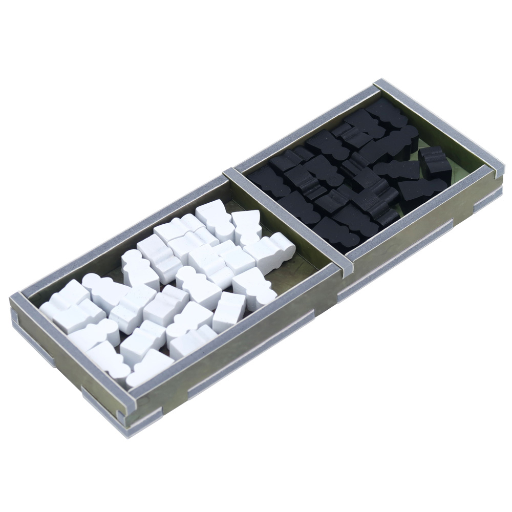 The design provides both efficient storage and improved game play. Many of the trays can be utilised during the game, and they greatly aid set-up and clear-away times.