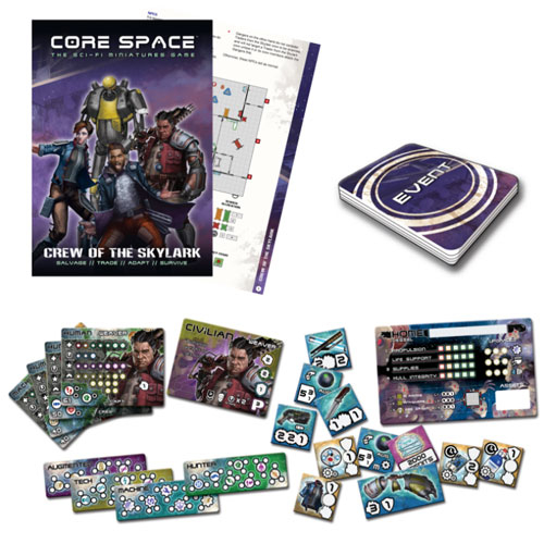 This pack contains a fully playable Trader crew for Core Space, including the Machine Mac and the augmented Marlowe. Get to know Captain Weaver and his crew in a thrilling new mission, and add a twist to your regular games with the new Assistance Cards and equipment such as the Shield Pod.