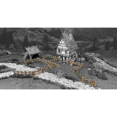 This pack upgrades your gaming table with a set of wooden fences. They will stretch almost 48" / 120cm if placed in a line or can be used to surround or separate smaller areas. The set includes a gate and some damaged sections, and the pieces can also be used as railings around buildings. The pieces are compatible with the rest of the Battle Systems Fantasy range.