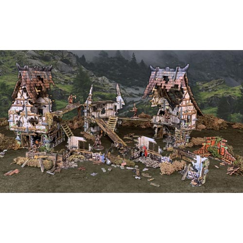 This box contains everything you need to turn your gaming table into a devastated town, suitable for many 28-35mm fantasy and historical games. The set can be used on its own to create a heavily ruined settlement, or the modular pieces can be combined with the other Fantasy Village buildings to partially ruin a whole town! The set includes walkways, ladders and other scatter terrain to accessorize your table.
