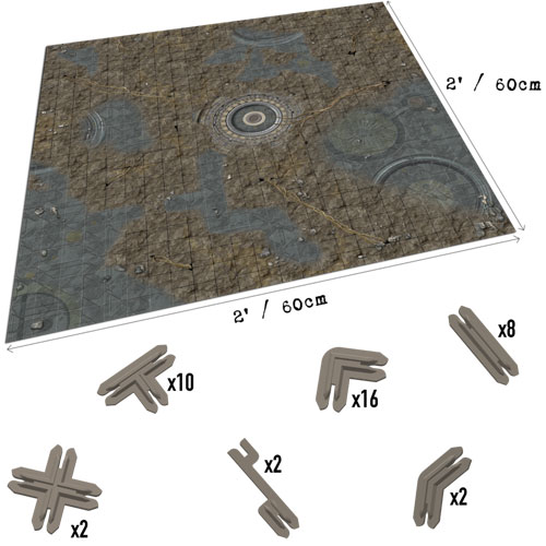 The terrain is supplied flat-packed on high-quality, high-density card, printed in full colour on both sides, so no painting required! The terrain requires assembly, and some smaller parts will require glue.1 Printed Neoprene Gaming Mat 2' x 2' / 600mm x 600mm